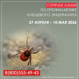 В период с 27 апреля по 10 мая 2026 года Федеральная служба по надзору в сфере защиты прав потребителей и благополучия человека проводит Всероссийскую «горячую линию» вопросам профилактики клещевого энцефалита и других инфекций, передающихся клещами.