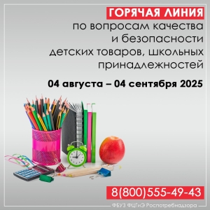 💬В период с 04 августа по 04 сентября 2025 года специалисты Роспотребнадзора ответят на вопросы, касающиеся качества и безопасности детской одежды, обуви, игрушек, школьной формы, канцелярских товаров, ранцев и портфелей, детского питания, дадут пояснения к действующим нормативным требованиям к категории товаров, предназначенных для детей и подростков.